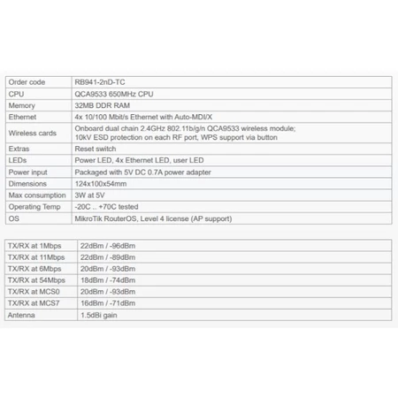 Mikrotik menggunakan standart power yang baru di varian ini yaitu MicroUSB 5v, hal ini memungkinkan pemasangan Routerboard ini menggunakan charger handphone/smartphone atau bahkan menggunakan powerbank yang banyak beredar di pasaran.